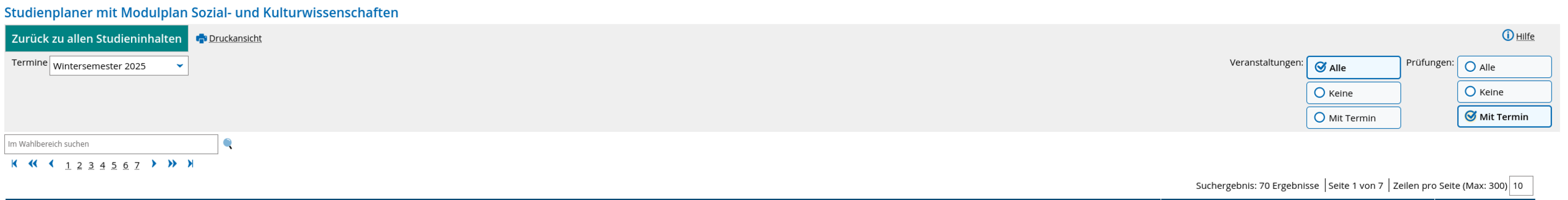 Um ausschließlich prüfungsrelevante Module angezeigt zu bekommen, stellen Sie bitte die folgenden Filter ein: