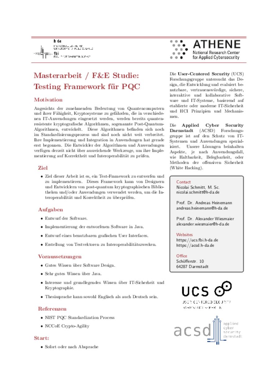 Bei Interesse melden Sie sich bitte bei Nicolai Schmitt.
